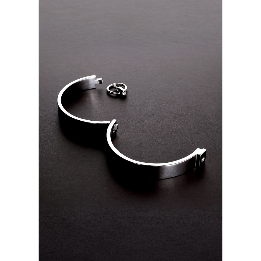 Beschrijving Deze halsband wordt vergrendeld met een inbussleutel (meegeleverd). Het duurzame en zware staal zal stevig rond de nek van je onderdanige zitten en hem/haar op zijn plaats blijven. De halsband heeft een O-ring voor bevestiging van kettingen, dassen of andere bondage-uitrusting.