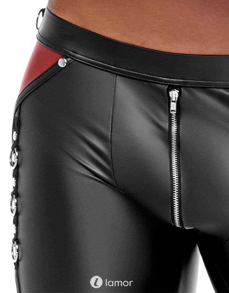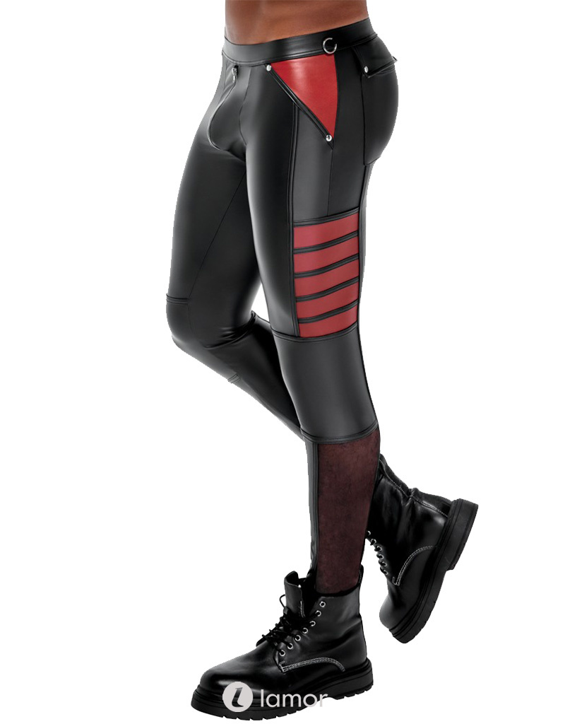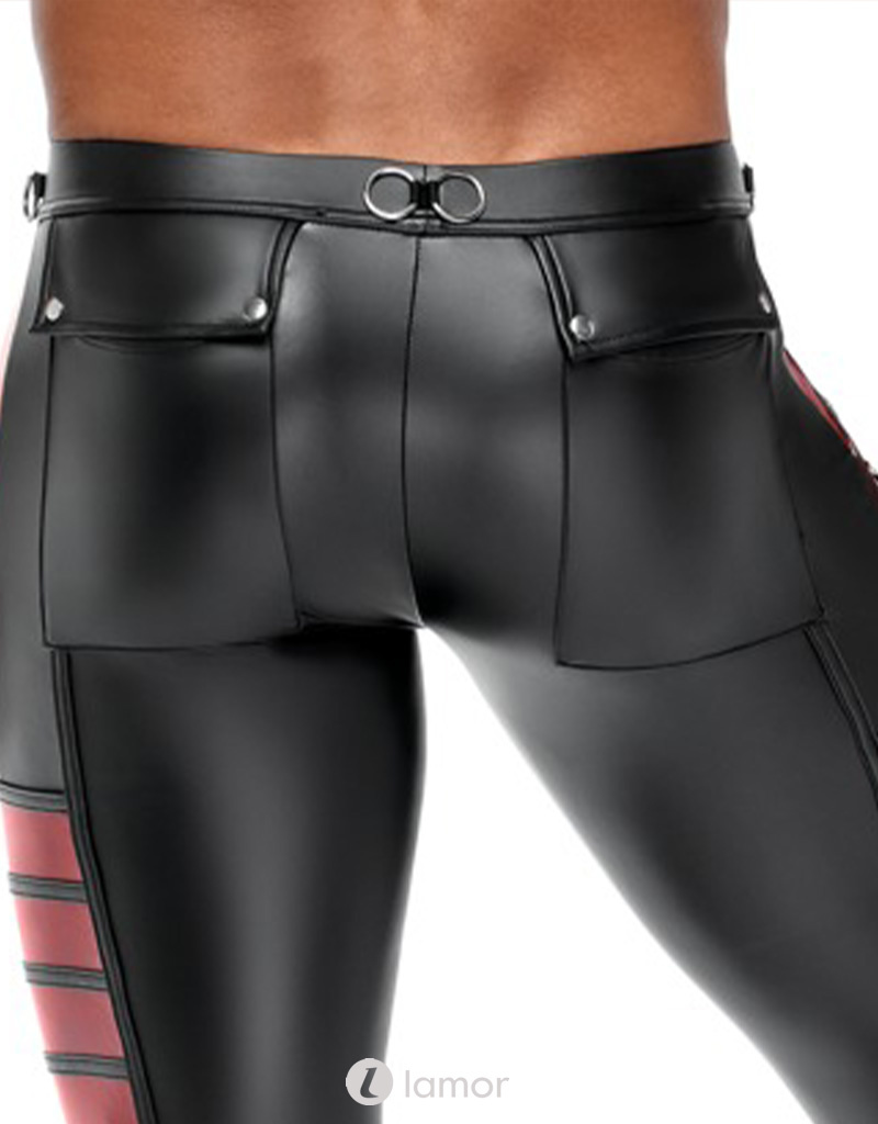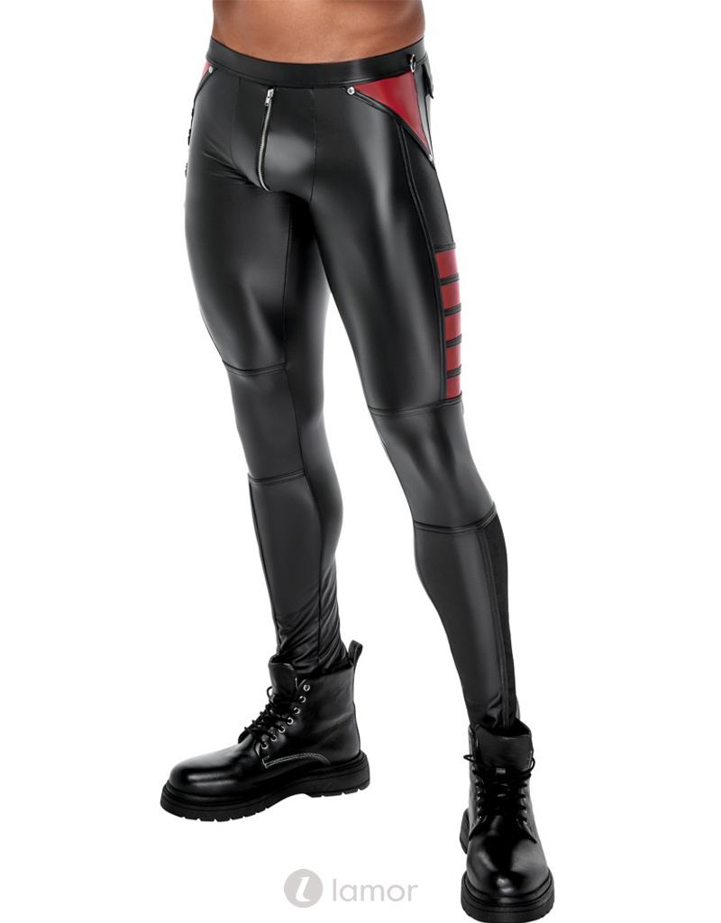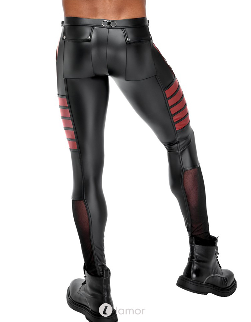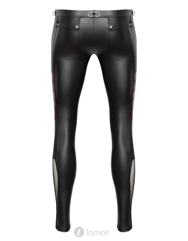 Strakke zwarte Mattlook herenbroek van NEK met rode contrasten, net-inzetten, ringen en zakken