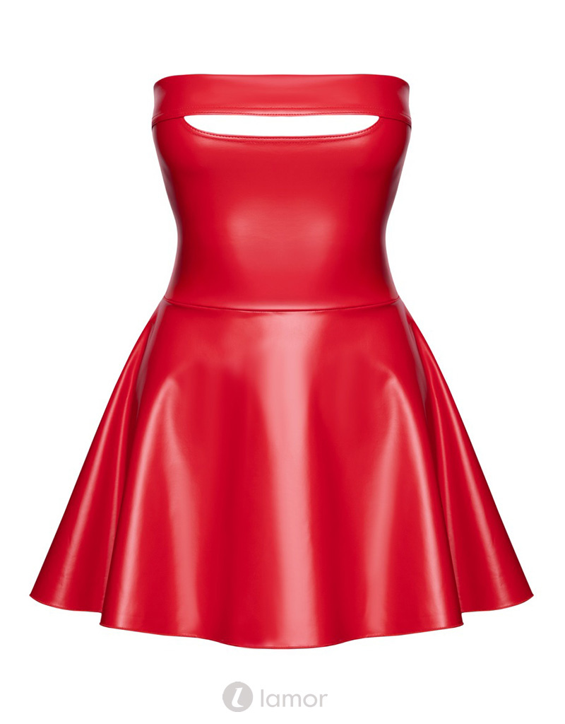 Exclusieve Noir Handmade strapless rood tube-minijurk in powerwetlook met cut-out detail