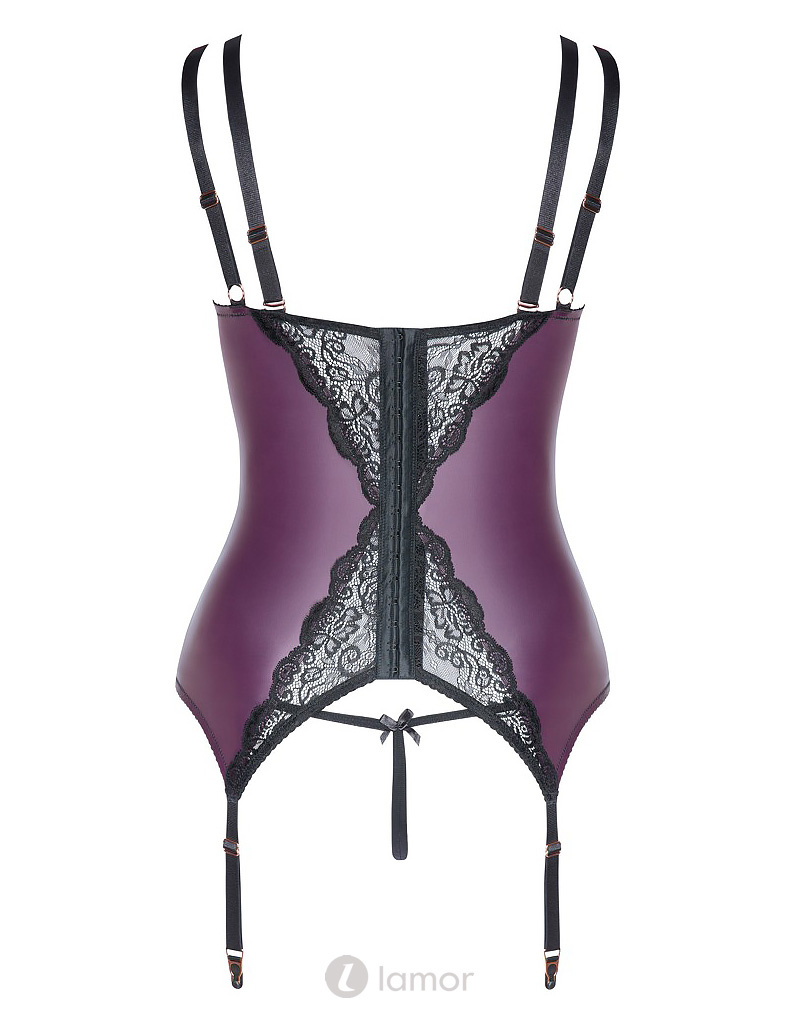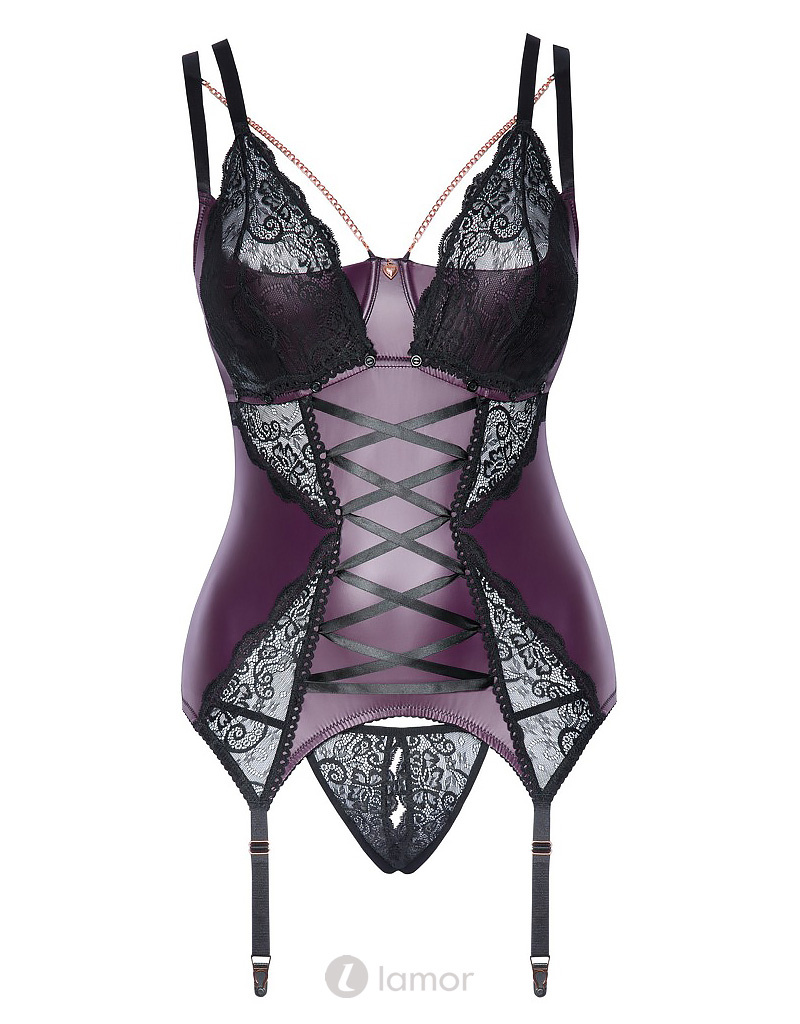 Cottelli Curves paars-zwarte set met strapshemd & ouvert string