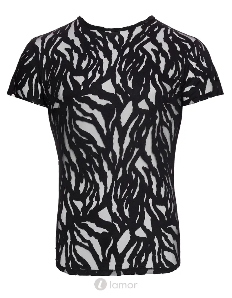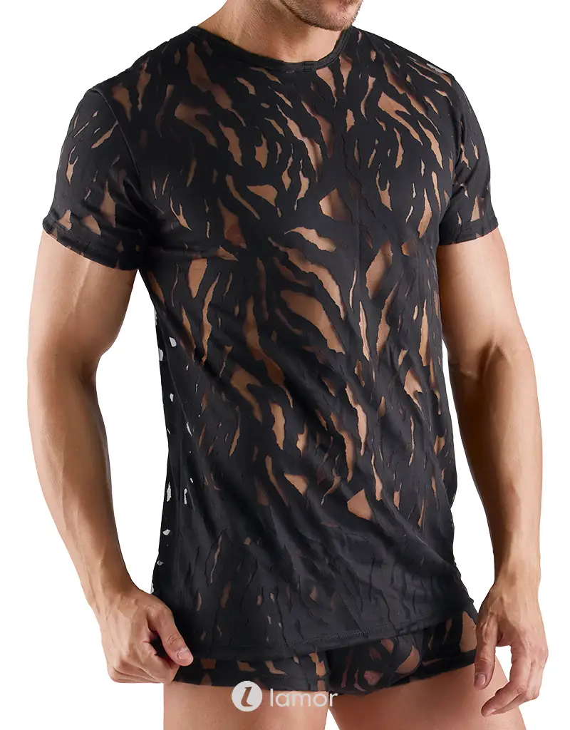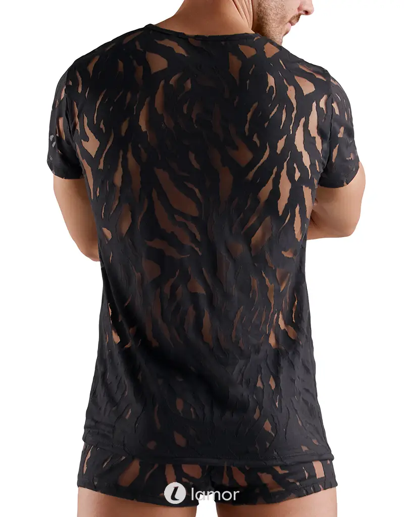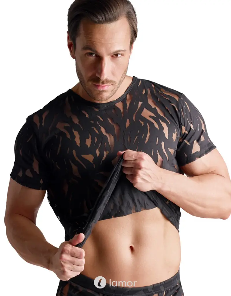 Svenjoyment transparant heren shirt burnout look zwart stretch