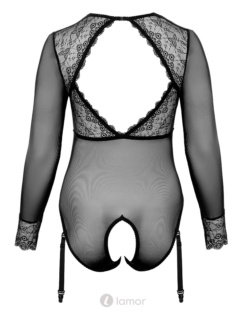 • Transparante langarm body van fijn powernet met kanten inzet.