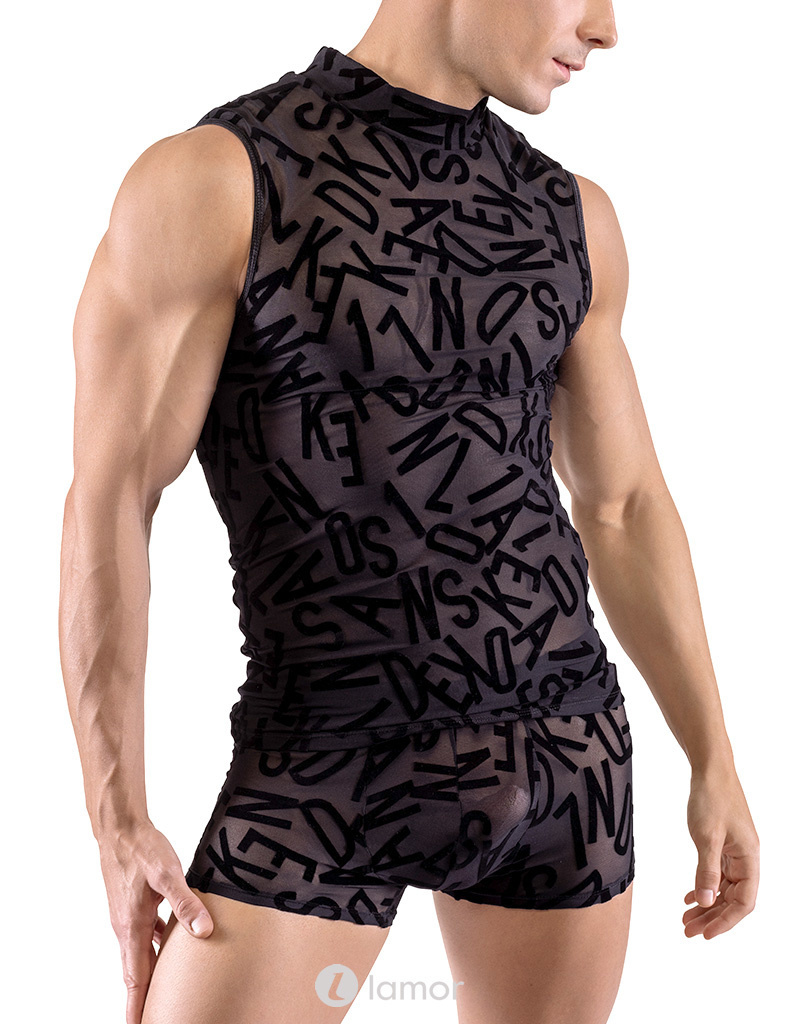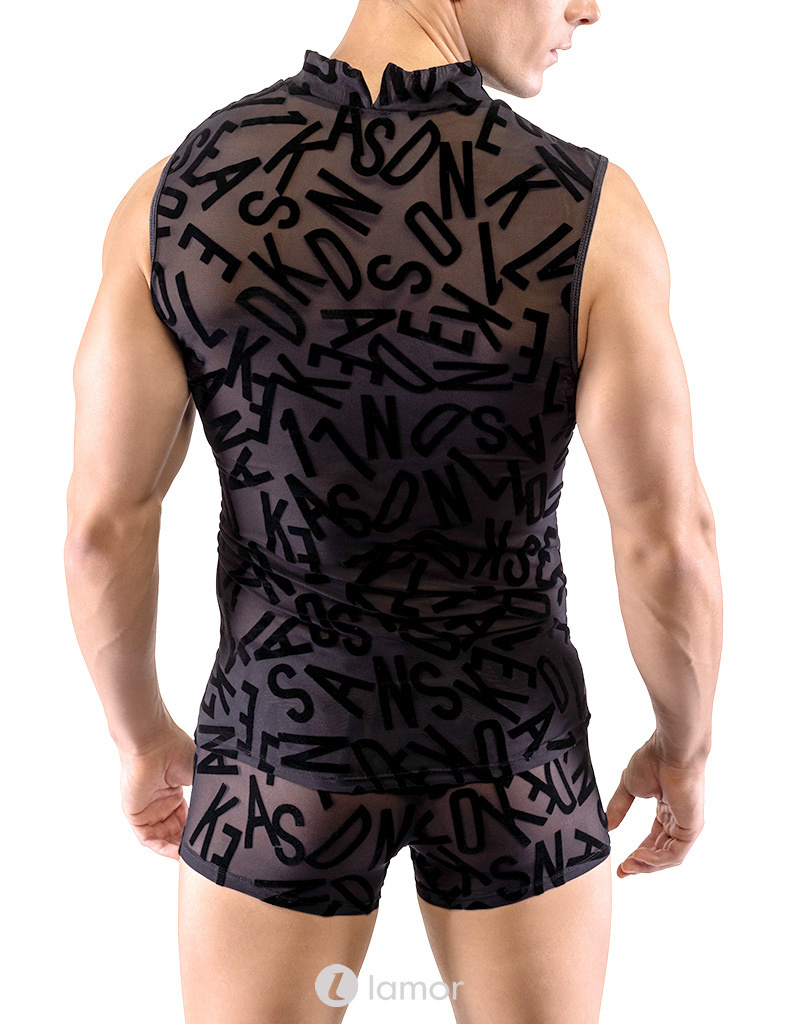 Transparante Heren shirt met fluwelen letters van SvenJoyment