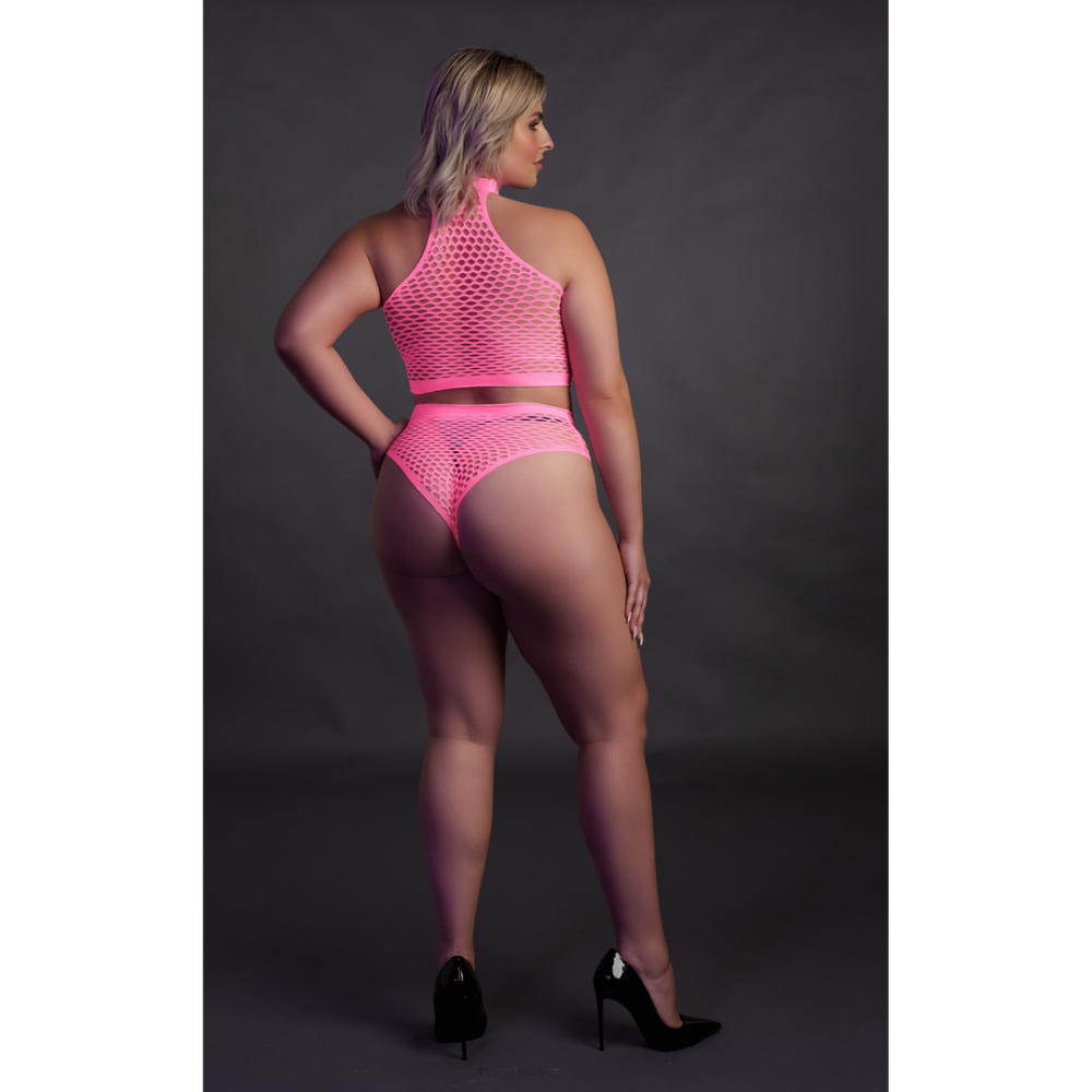 Turtleneck en Hoge Taille Slip - Plus Size - Neon Roze