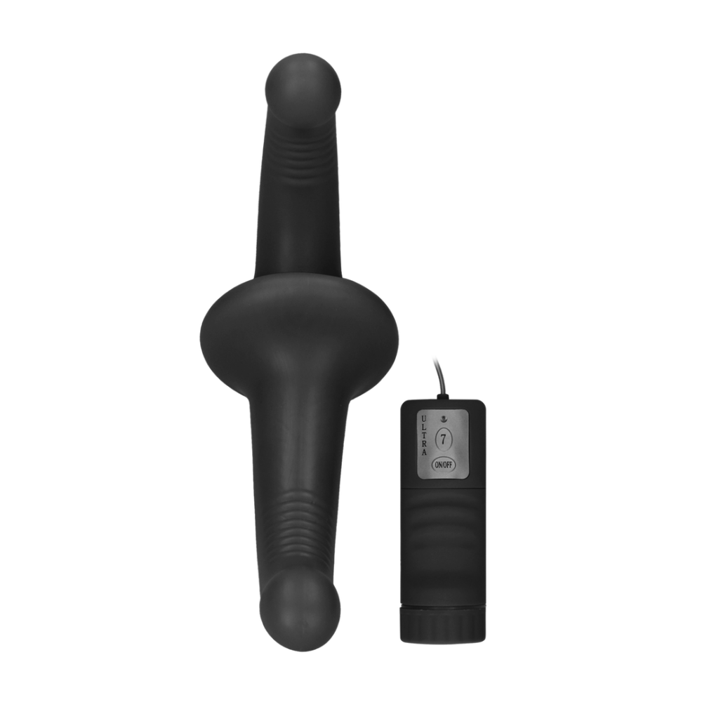 Beschrijving Dit baanbrekende model is uitgerust met een op afstand bedienbare trilfunctie met 10 snelheden voor nog meer opwinding tijdens het spelen. Volledig zonder bandjes, blijft hij op zijn plaats met een inbrengbare, geribbelde, gebogen sonde, die zorgt voor heerlijke G-spot-stimulatie bij de drager. Het langere geribbelde uiteinde kan worden gebruikt om uw mannelijke of vrouwelijke partner te penetreren. Ideaal voor koppels van hetzelfde geslacht of koppels die houden van rimming. U kunt nu beiden genieten van sterke vibratie, comfortabele penetraties en van een immense gelukzaligheid samen. Gemaakt van superflexibel thermoplastisch rubber met een afwerking van soepel medisch silicone, is dit sensationele speeltje voorzien van een gebogen G-spot-stimulatiegedeelte van 6,8 cm en een penetrerend deel dat een volle 12 cm meet. De OUCH!- STRAPLESS STRAPON is verkrijgbaar in drie prikkelende kleuren: zwart, roze en paars. Werkt op twee AA-batterijen, die zijn inbegrepen.