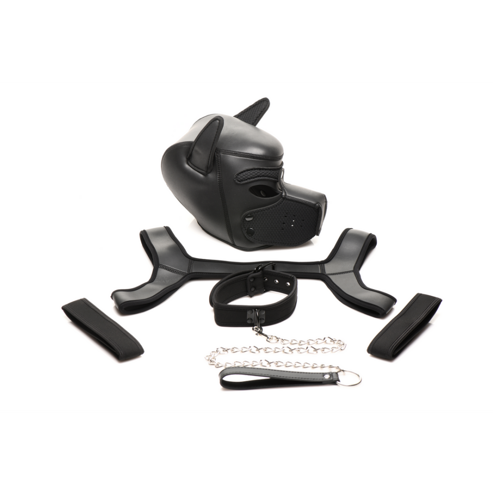 Wanneer je als puppy speelt, maakt de juiste uitrusting een groot verschil! Krijg alles wat je nodig hebt om te beginnen in één set en leef je fantasie uit! In de set zit een puppykap, halsband en lijn, armbanden en een borstharnas. Gemaakt van duurzaam neopreen, is deze uitrusting vegan-vriendelijk, gemakkelijk schoon te maken als je begint te worstelen en in de modder speelt of vies wordt, en comfortabel om te dragen! De puppykap heeft poseerbare oren en een verwijderbare muilkorf. Richt je oren op verschillende manieren om je stemming of persoonlijkheid te tonen. Verwijder je muilkorf om je menselijke mond te gebruiken wanneer je dat wilt of nodig hebt. De armbanden en halsband zijn verstelbaar voor een op maat gemaakte pasvorm. Het borstharnas past op de meeste lichamen. Plaatselijke reiniging indien nodig. Bewaar uit de directe zon. Klaar om ruw te worden en te spelen? Trek je Pup Arsenal set aan en sluit je aan bij het feest! Als je een handler hebt, kan hij je aan de lijn leiden. Of je kunt verschijnen als een rebelse pup en worstelen en spelen met de rest van de roedel! Met je hoofd volledig getransformeerd, een muilkorf op je gezicht, kun je beginnen de hond in jezelf te belichamen en de pupmentaliteit aan te nemen. Ga je een bal achterna en apporteren? Ga je blaffen naar andere honden totdat ze spelen? Ga je omrollen en om een buikmassage vragen? Wat voor pup ben jij? Alleen door de uitrusting aan te trekken, kun je echt loslaten en de menselijke-dier overhandigen! Afmetingen: KAP: 58 cm omtrek van het voorhoofd, 58 cm omtrek van kin tot kroon (niet uitgerekt). HARNAS: past op een omtrek van 86 cm tot 94 cm. ARMBANDEN: verstelbaar van 22 cm tot 37 cm omtrek. HALSBAND: verstelbaar van 32 cm tot 44 cm omtrek. LIJN: 80 cm lang inclusief handvat. Materialen: Neopreen, PU leer, Klittenband, metaal. Kleur: Zwart. Belangrijkste Kenmerken: Complete Puppy Speelset: Alles wat je nodig hebt om te spelen! Inclusief een puppykap, halsband, lijn, borstharnas en armbanden. Rekbaar en Duurzaam: Het neopreen materiaal is gevoerd, rekbaar, duurzaam en comfortabel voor ruw spel en plezier! Speciale Puppy Kap: Deze kap heeft poseerbare oren en een verwijderbare muilkorf zodat je je stemming en persoonlijkheid kunt tonen en ook je menselijke mond kunt gebruiken wanneer je dat wilt. Verstelbaar: De halsband en armbanden zijn verstelbaar voor jouw comfort. Het borstharnas past op de meeste maten.
