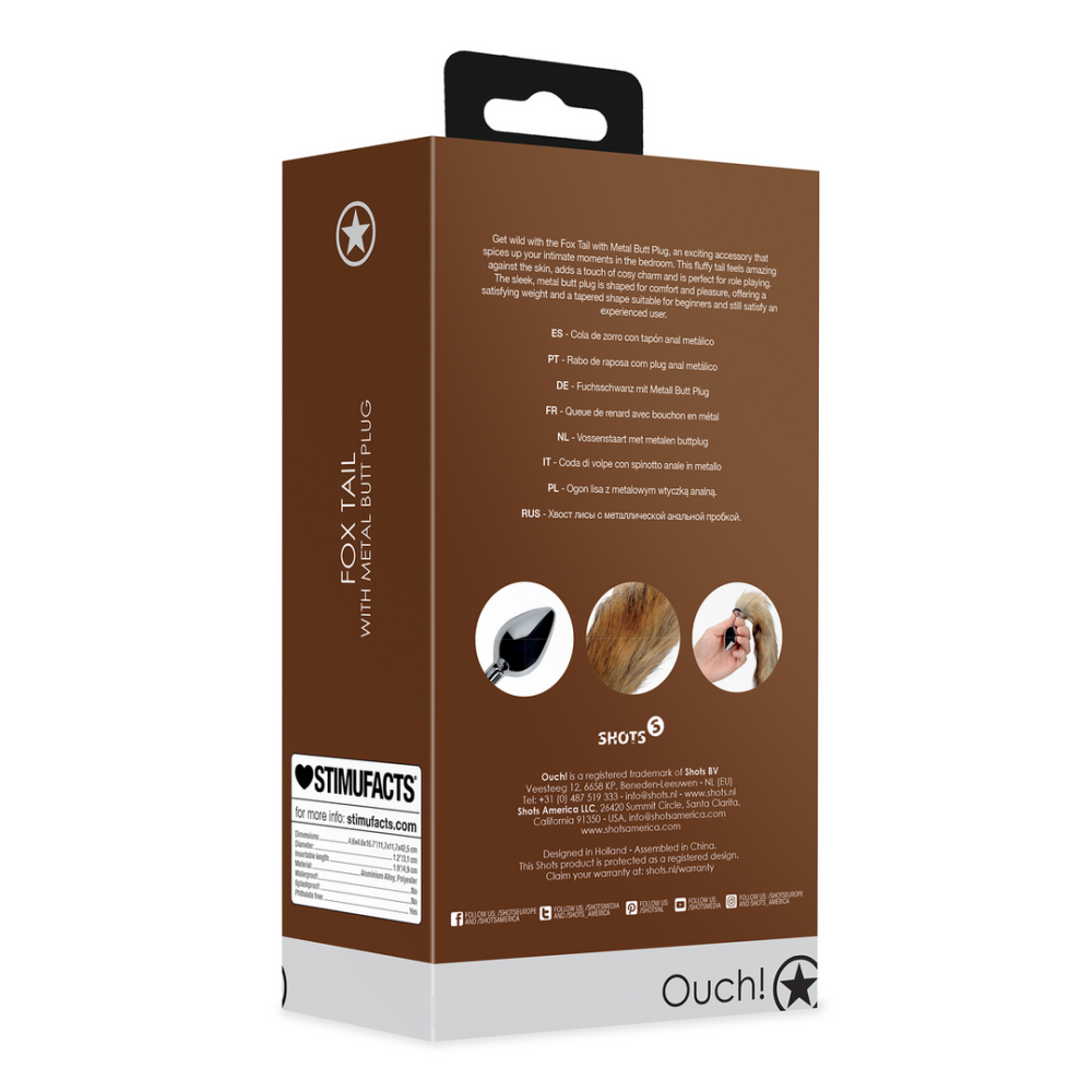 Beschrijving Word wild met de Vossenstaart met Metalen Butt Plug, een opwindend accessoire dat je intieme momenten in de slaapkamer wat pittiger maakt. Deze pluizige staart voelt geweldig tegen de huid, voegt een vleugje gezellige charme toe en is perfect voor rollenspellen. De slanke, metalen buttplug is gevormd voor comfort en plezier, en biedt een bevredigend gewicht en een taps toelopende vorm die geschikt is voor beginners en ook een ervaren gebruiker nog steeds tevreden stelt.