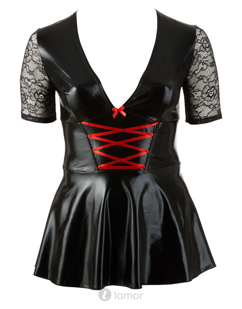Cottelli Lingerie Wetlook Dessous Jurkje Met Kant Grote Maten