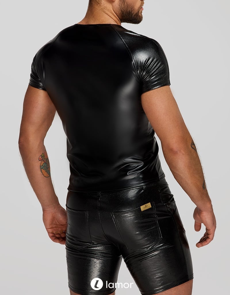 Wetlook Heren T-Shirt met slangen relief op de mouwen van Noir Handmade