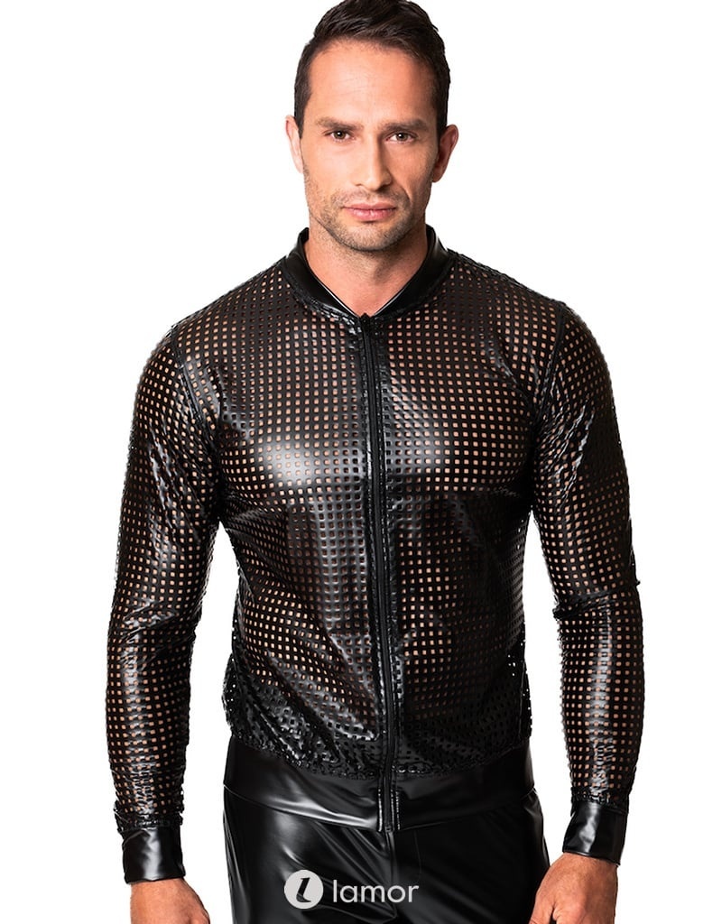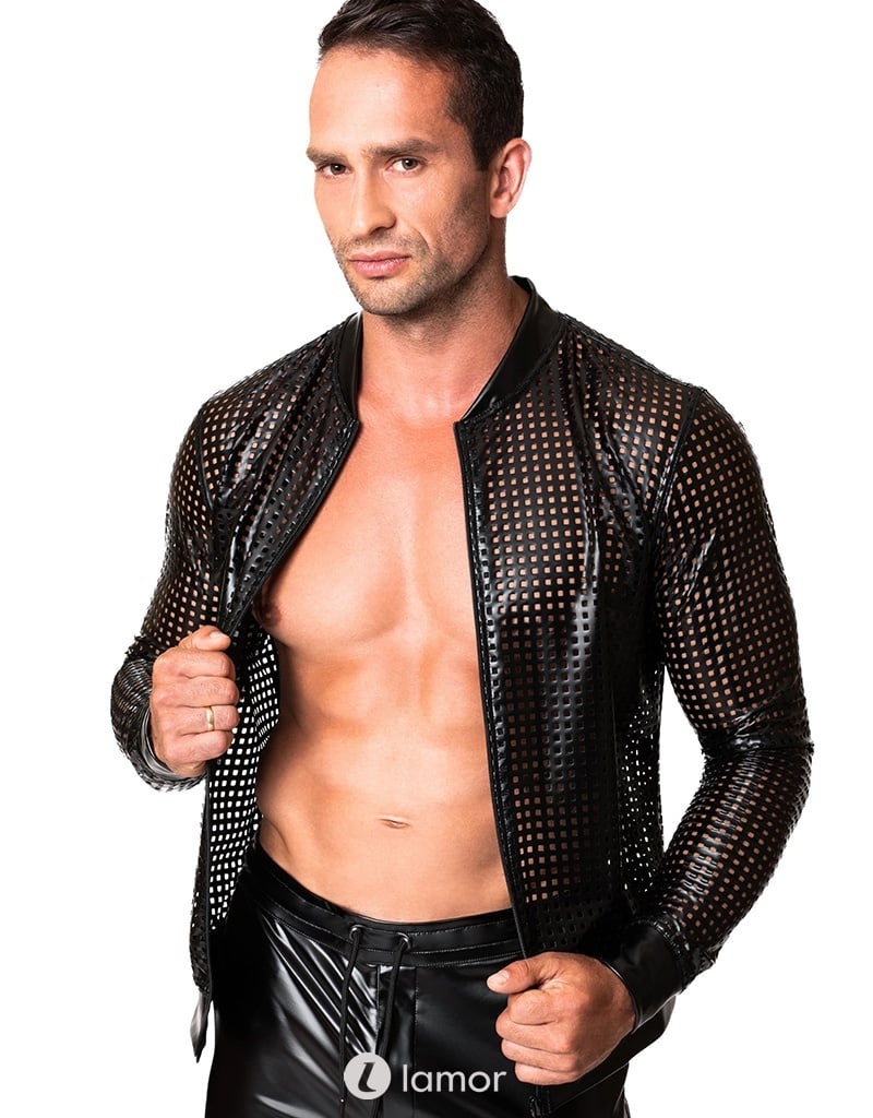 Sexy Powerwetlook heren Jackgeperforeerd van Noir Handmade Chaos Collection
