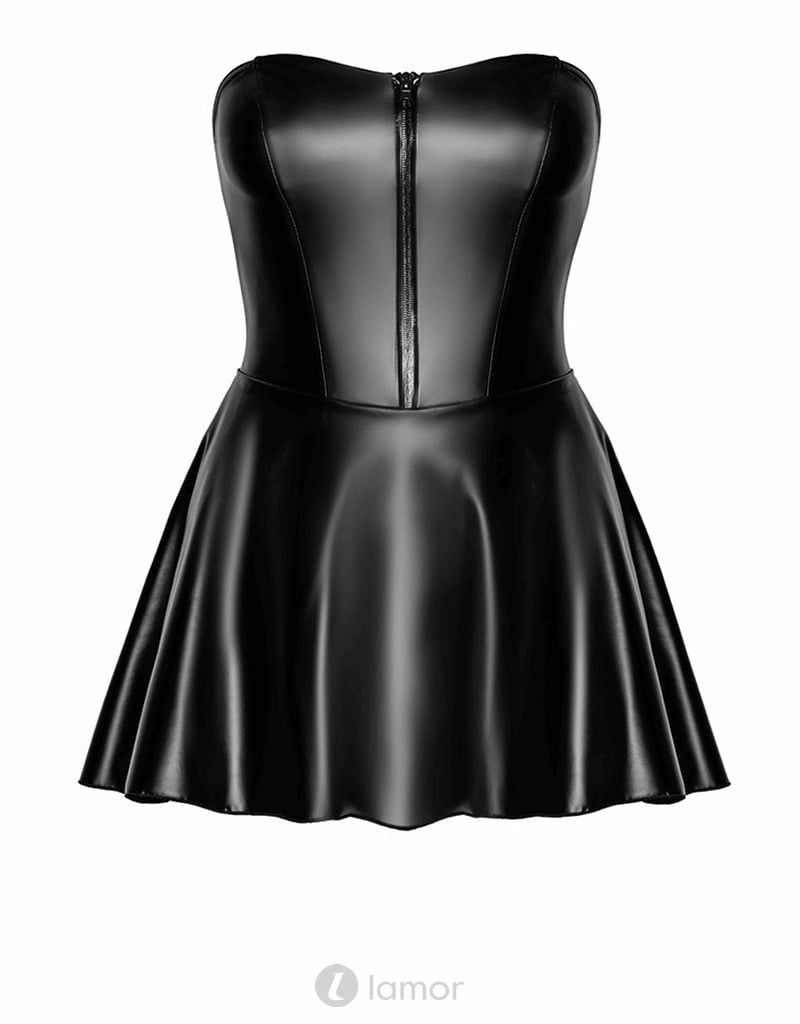 Strapless wetlook jurk met klokrok Noir Handmade Libido Collection