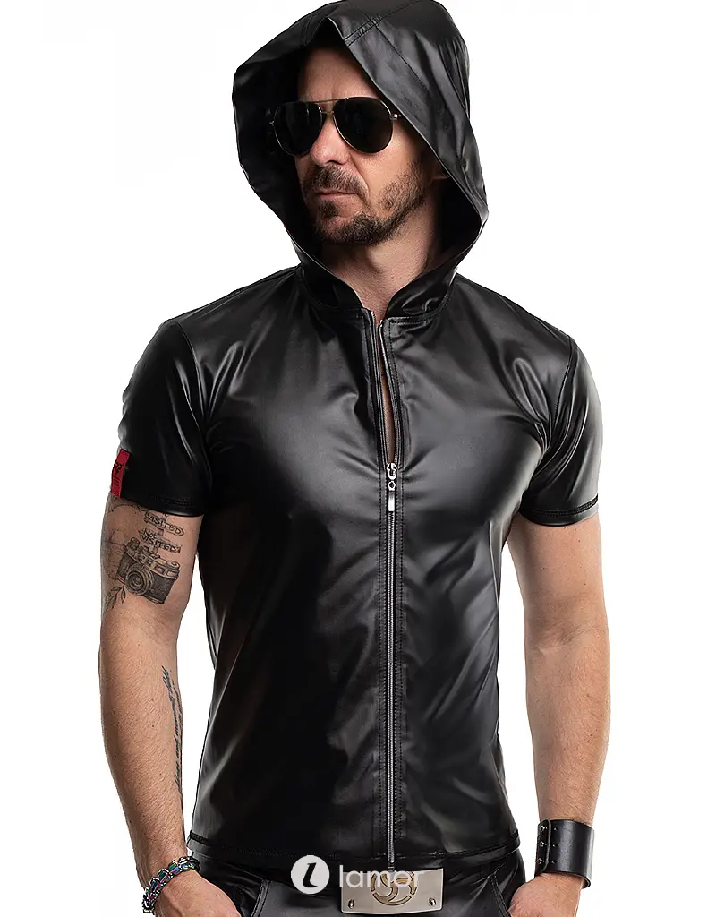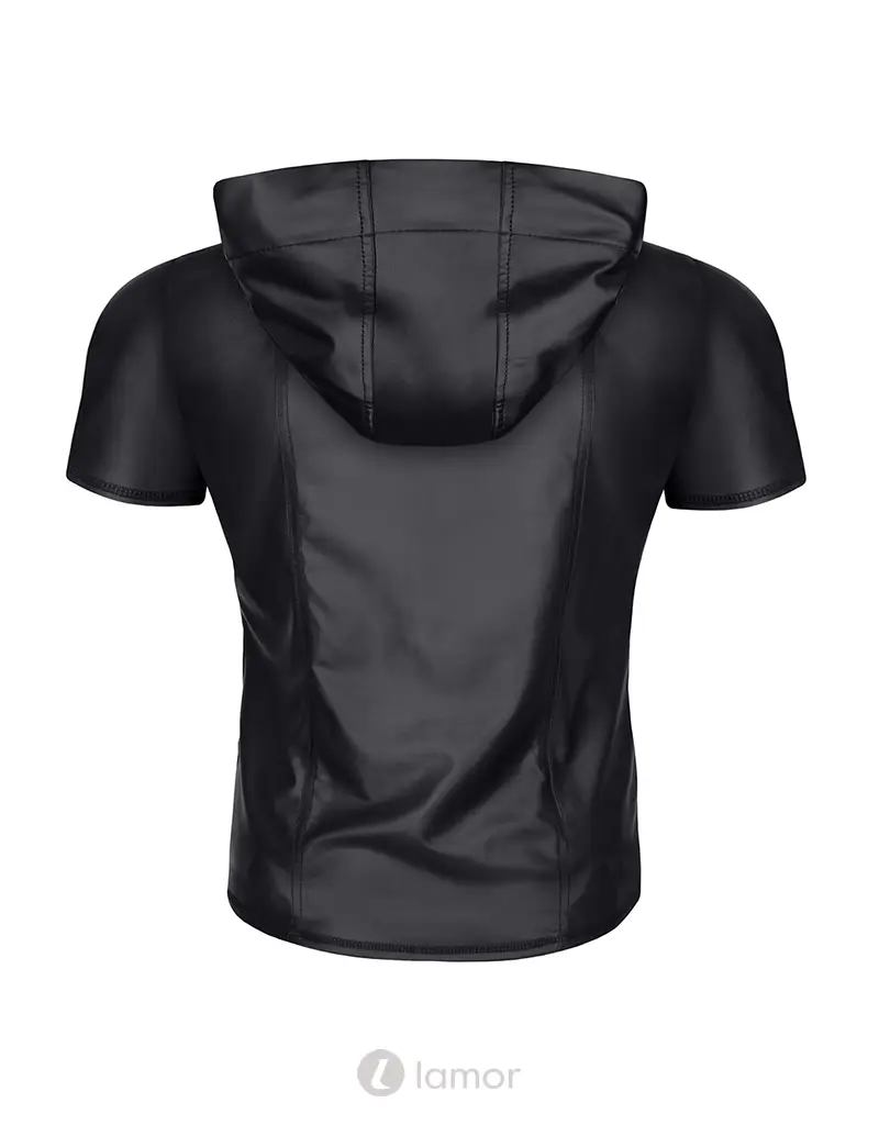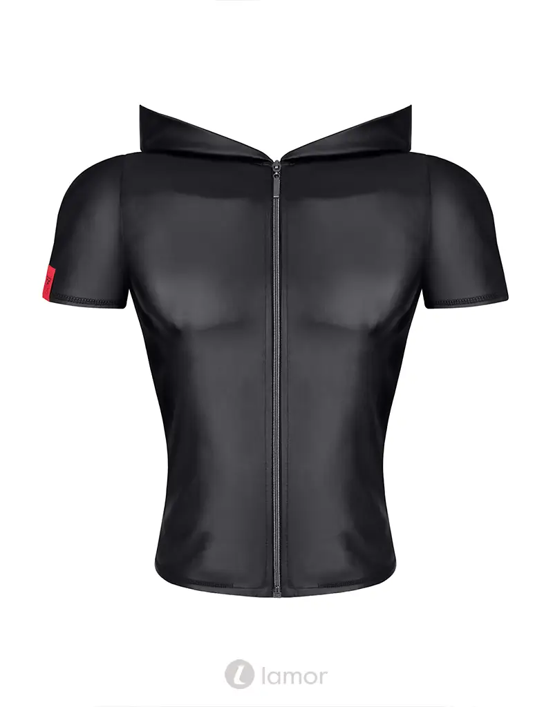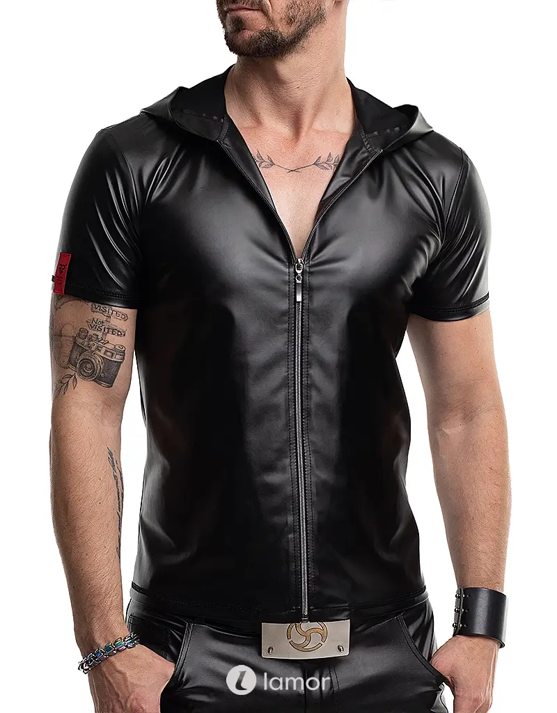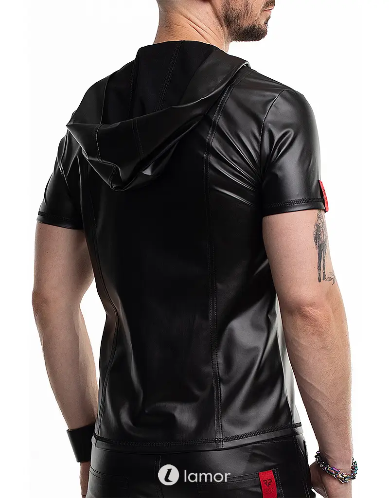 RFP wetlook T-shirt zwart met rits en slim fit pasvorm