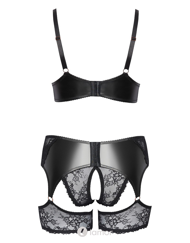 Cottelli Curves kanten set met bh, ouvert slip & jarretelgordel