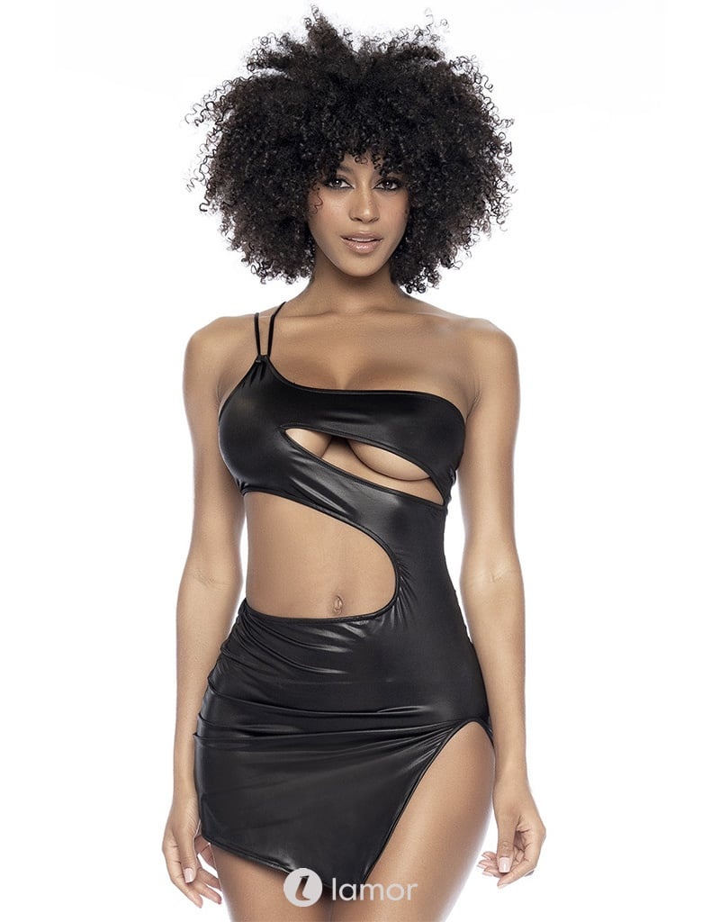 One Shoulder mini-jurkje van rekbaar wetlook materiaal met uitsparingen van Mapale