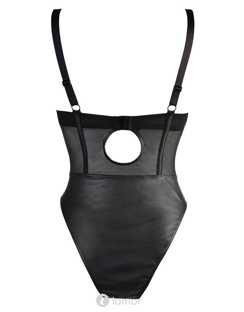 Verleidelijke body gemaakt van een combinatie van zachte tule en latexachtig materiaal