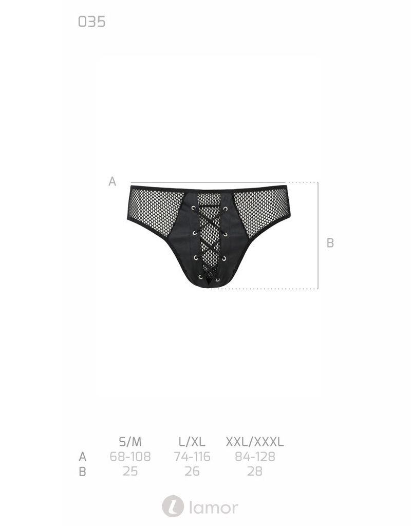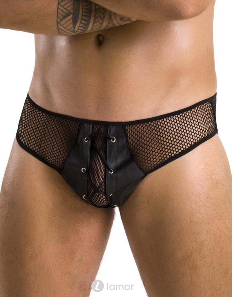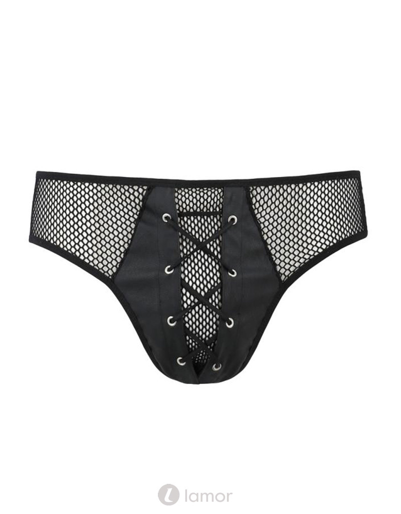 Ontdek de ultieme mix van sensualiteit en stijl met de Sexy heren slip van lederlook en mesh van Passion Menswear. Deze verleidelijke slip combineert het stoere uiterlijk van lederlook met het intrigerende effect van mesh, waardoor je een onweerstaanbare uitstraling krijgt. De slip is vervaardigd met oog voor comfort en design, waardoor je niet alleen verleidelijk, maar ook comfortabel kunt zijn. De lederlook accenten voegen een vleugje edgy flair toe, terwijl het mesh-materiaal zorgt voor een verleidelijke en speelse twist.Of je nu een intiem moment wilt verrijken of jezelf wilt trakteren op iets bijzonders, deze sexy heren slip is de perfecte keuze. De unieke combinatie van lederlook en mesh geeft je zelfvertrouwen een boost en laat je er onweerstaanbaar uitzien.