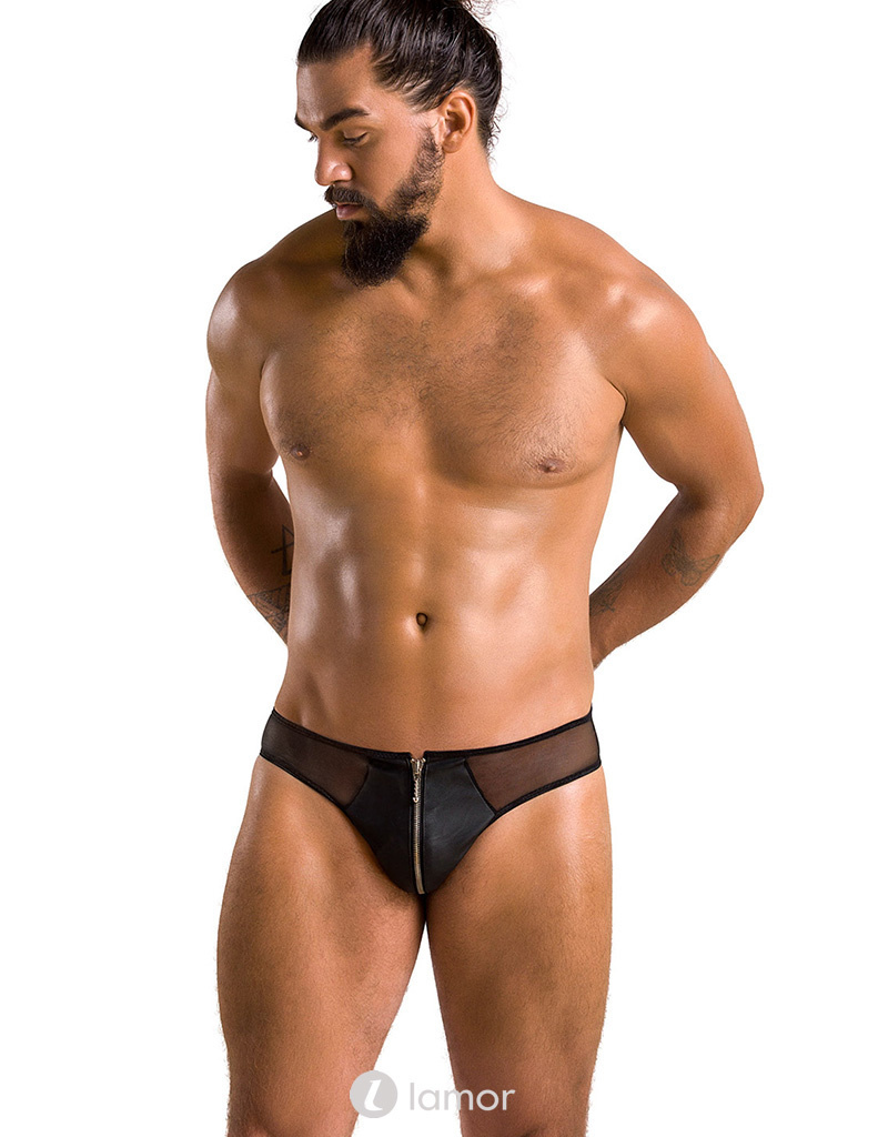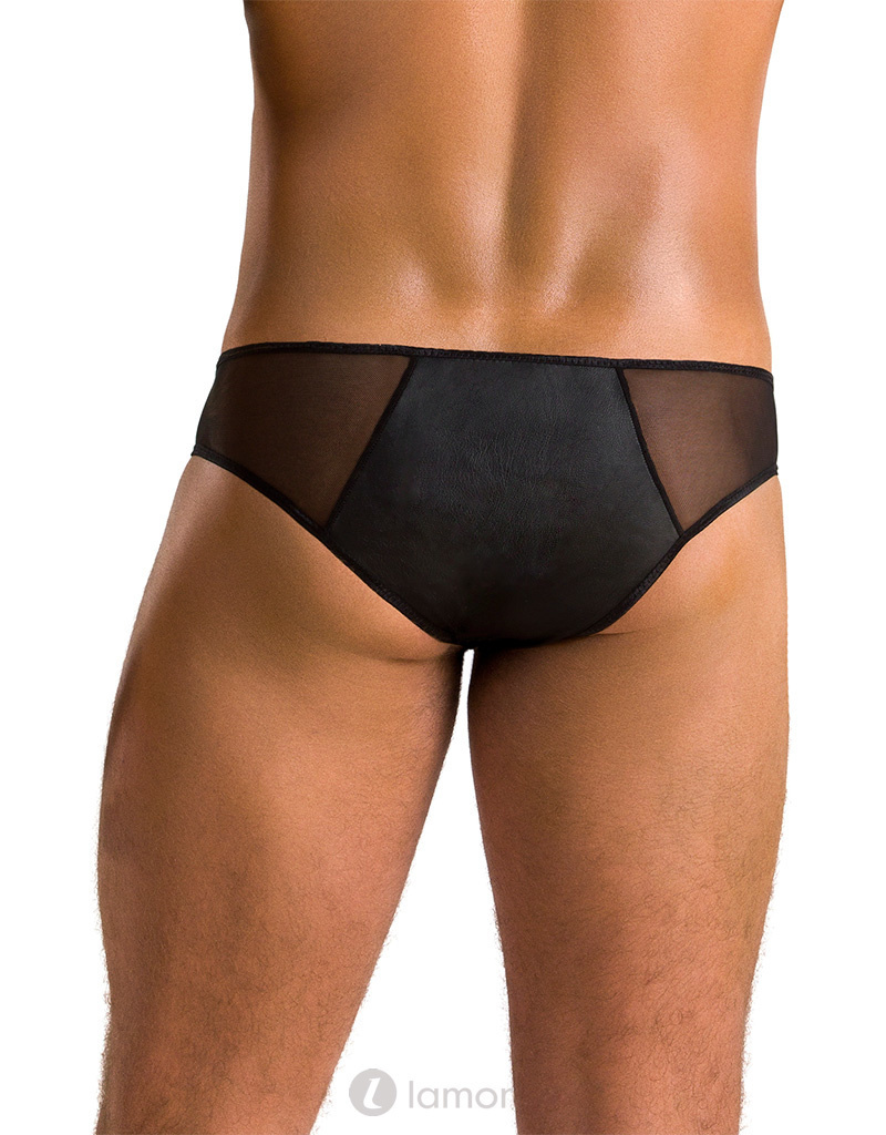 Sexy heren slip van lederlook en mesh van Passion Menswear