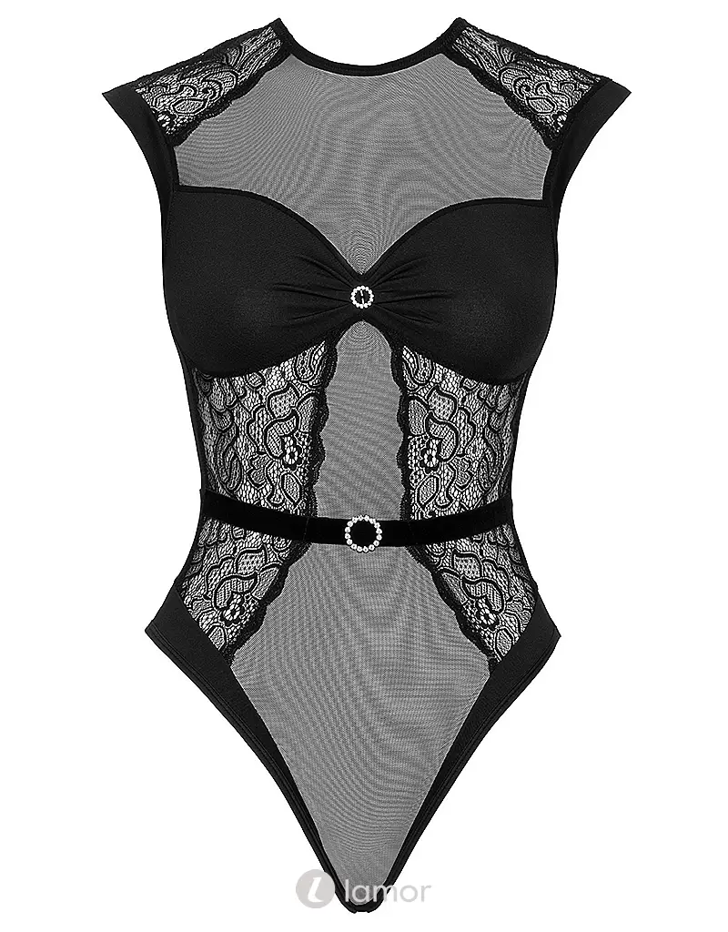 Cottelli Lingerie zwarte transparante riobody met kant en strass