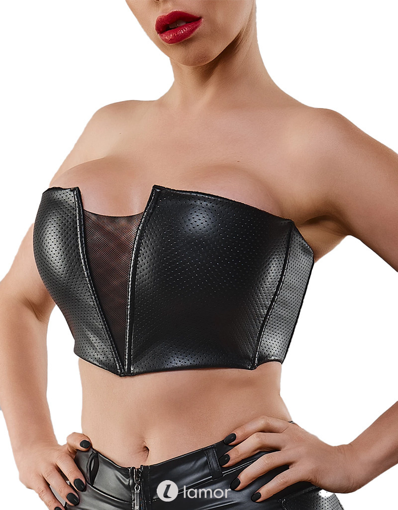 Sexy geperforeerde lederlook top van het merk Demoniq