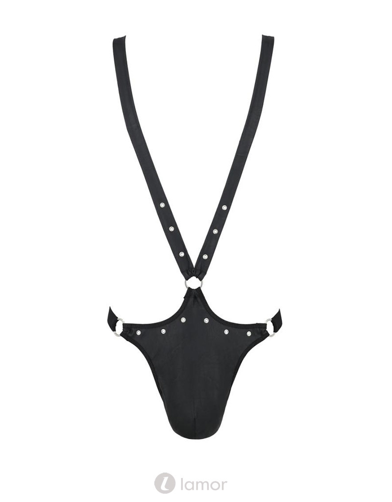 Ontdek de verleidelijke en stoere uitstraling van de Herenbody van mat imitatieleer en brede elastische banden van Passion Menswear. Deze body is gemaakt van hoogwaardig mat imitatieleer, wat zorgt voor een edgy en sexy look. De brede elastische banden geven de body een opvallend en modern karakter, terwijl de metalen elementen als versiering dienen en een stoere touch toevoegen aan het ontwerp.