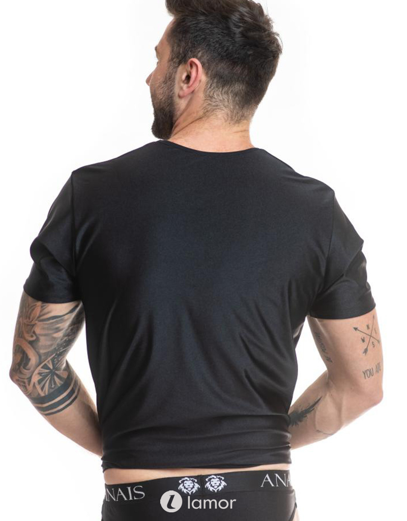 Zwart shirt van licht glanzend ondoorzichtige stof van het merk Anais men